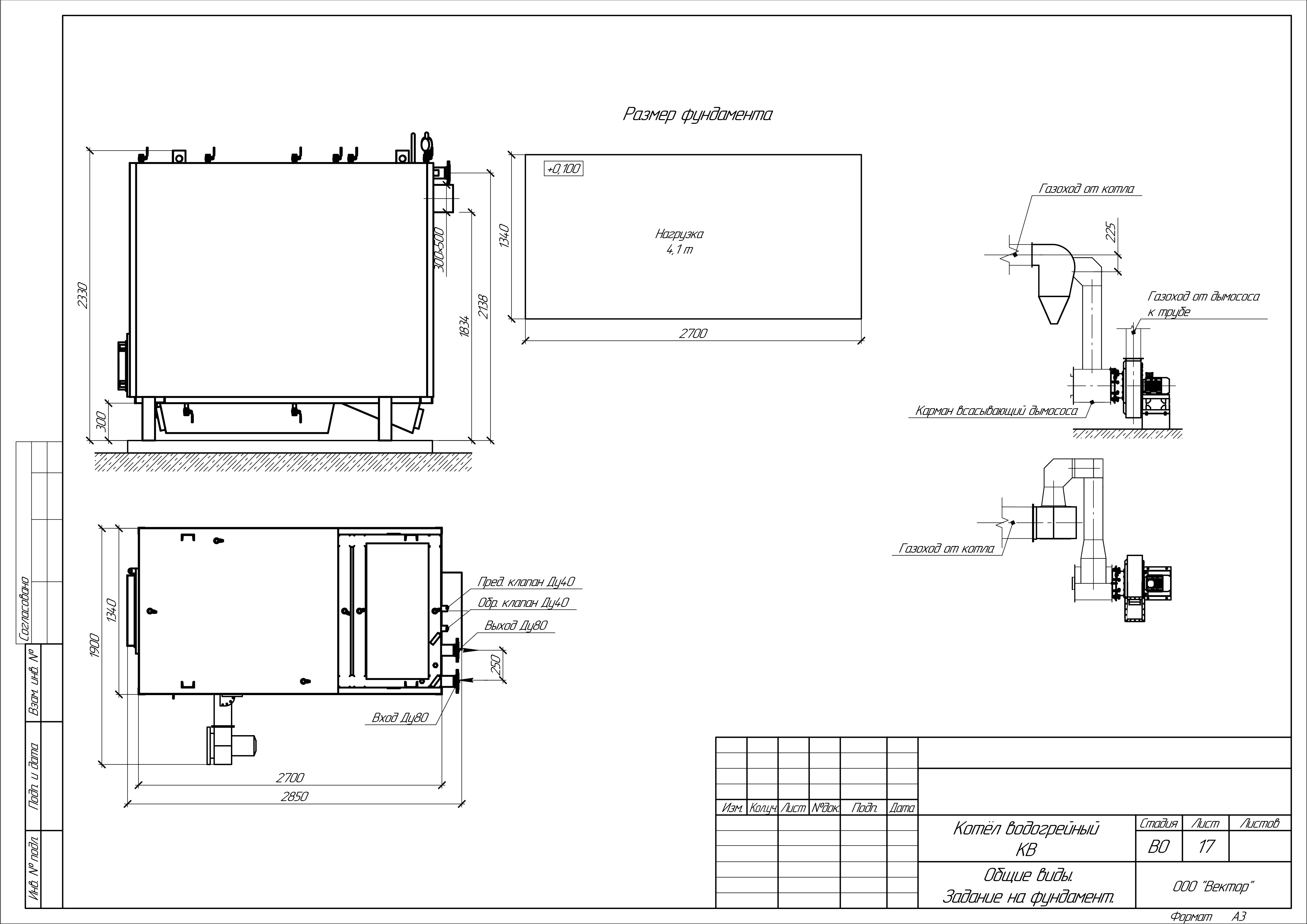 Масса котла (без воды): 3000 кг